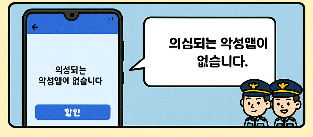 - 검사 결과 확인: 검사 결과에 따라 악성 앱이 발견되면 삭제를 권장합니다.